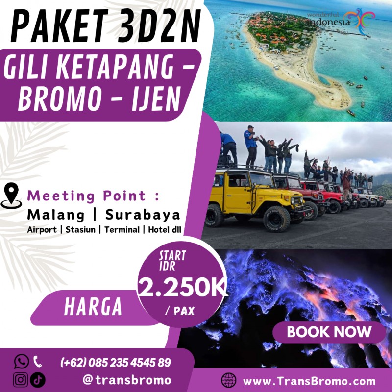 Anda ingin booking atau ingin info lebih Paket Wisata 3 Hari 2 Malam Gili Ketapang - Bromo dan Kawah Ijen?